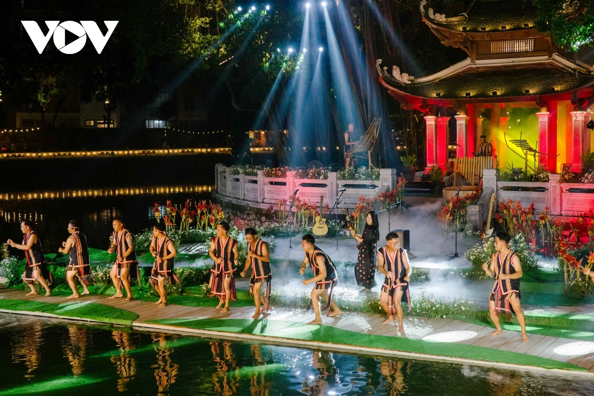 Chương trình được khép lại bằng tiết mục Cồng chiêng và Nối vòng tay lớn, đêm diễn khắc họa thông điệp gắn kết văn hóa giữa các vùng miền, tôn vinh giá trị di sản dân tộc và khơi dậy niềm tự hào về bản sắc Việt Nam trong dòng chảy hội nhập hôm nay.