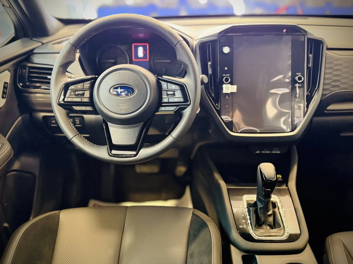 Trong khi đó, khoang nội thất được cải thiện về không gian và tính tiện nghi. với ghế ngồi thiết kế công thái học giúp giảm mệt mỏi khi di chuyển đường dài, ghế lái chỉnh điện 10 hướng tích hợp hỗ trợ lưng. Trung tâm bảng táp-lô là màn hình cảm ứng 11,6 inch Full HD, hỗ trợ Apple CarPlay và Android Auto không dây, sạc không dây Qi và cổng USB cho cả hai hàng ghế. Ngoài ra, Subaru Forester còn được trang bị cốp điện có cảm biến đá chân và cửa sổ trời chỉnh điện.