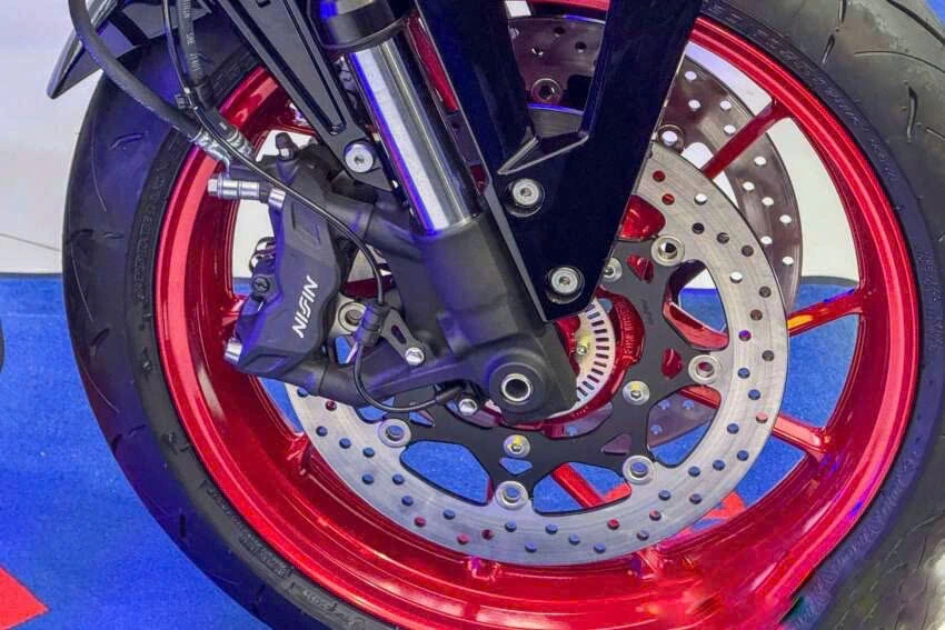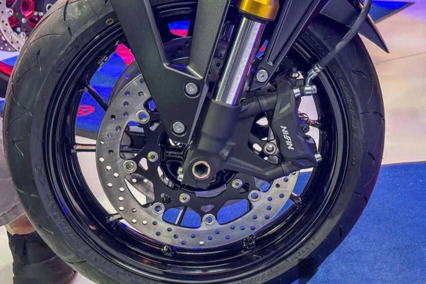 Bộ mâm 17 inch trước và sau đi kèm lốp có kích thước 120/70 phía trước và 180/55 phía sau, đảm bảo độ bám và ổn định khi vào cua. Hệ thống treo đến từ Kayaba, gồm phuộc trước hành trình ngược (USD) và giảm xóc đơn có thể điều chỉnh tải trước ở phía sau. Về phanh, xe được trang bị đĩa đôi 310 mm phía trước và đĩa đơn 240 mm phía sau, mang lại hiệu suất hãm phanh mạnh mẽ và an toàn.