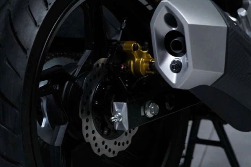 Về hệ thống treo, phía trước là phuộc ống lồng (telescopic) không thể điều chỉnh với hành trình 185 mm, trong khi phía sau sử dụng monoshock có thể điều chỉnh tải trước (preload) với hành trình 32 mm. Hệ thống phanh trước và sau là đĩa thủy lực đơn (250 mm phía trước, 200 mm phía sau), đi kèm hệ thống chống bó cứng phanh ABS hai kênh.
