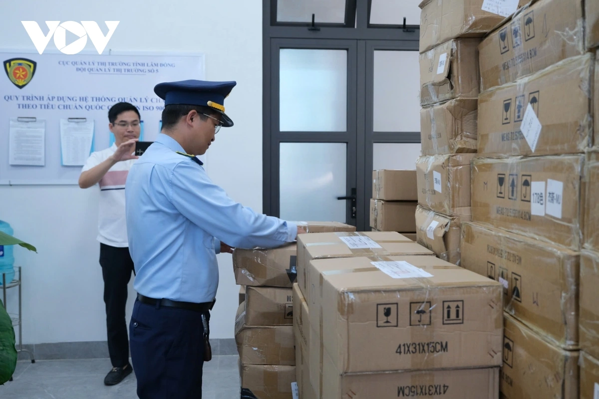 VOV.VN - Lực lượng Quản lý thị trường (QLTT) tỉnh Lâm Đồng vừa phát hiện và tạm giữ hơn 20.000 sản phẩm không có nguồn gốc xuất xứ, với tổng trị giá gần 300 triệu đồng.