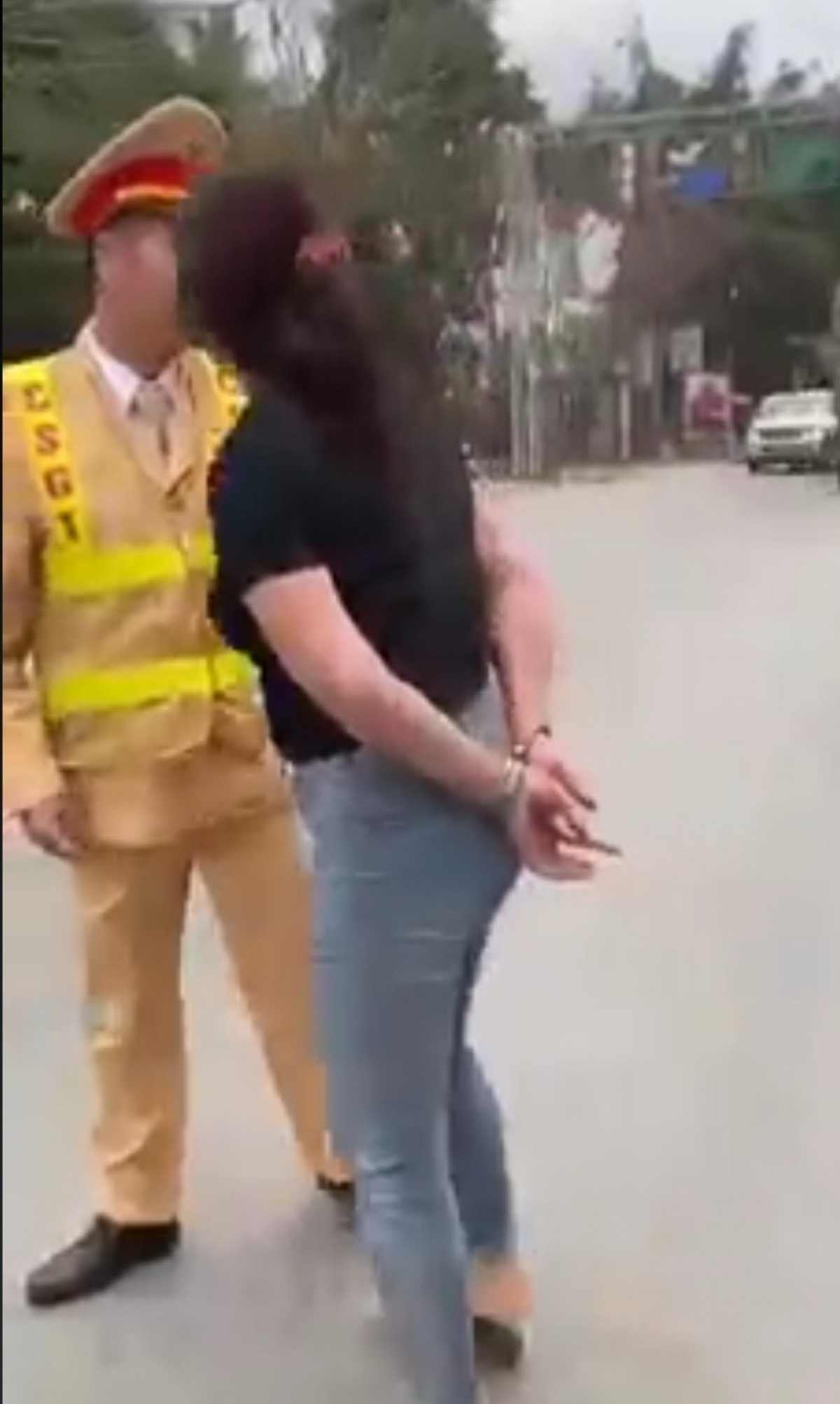 Người phụ nữ này được xác định là Nguyễn Thị Ng. (là mẹ chồng người vi phạm giao thông). Không chỉ dùng lời thô tục lăng mạ, người phụ nữ này luôn có hành động khiếm nhã đụng chạm cơ thể vào những người làm nhiệm vụ, cản trở lực lượng thực thi nhiệm vụ.