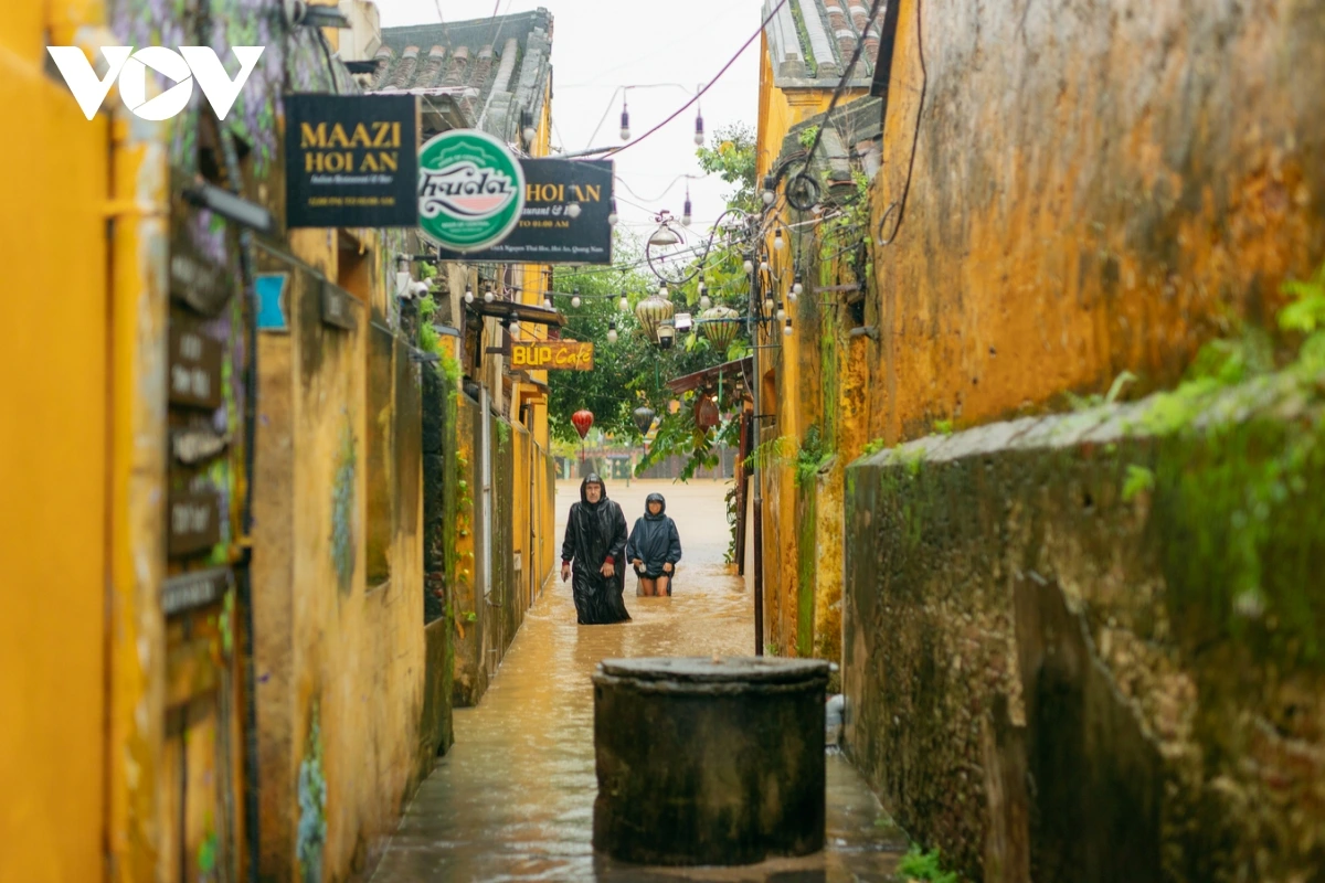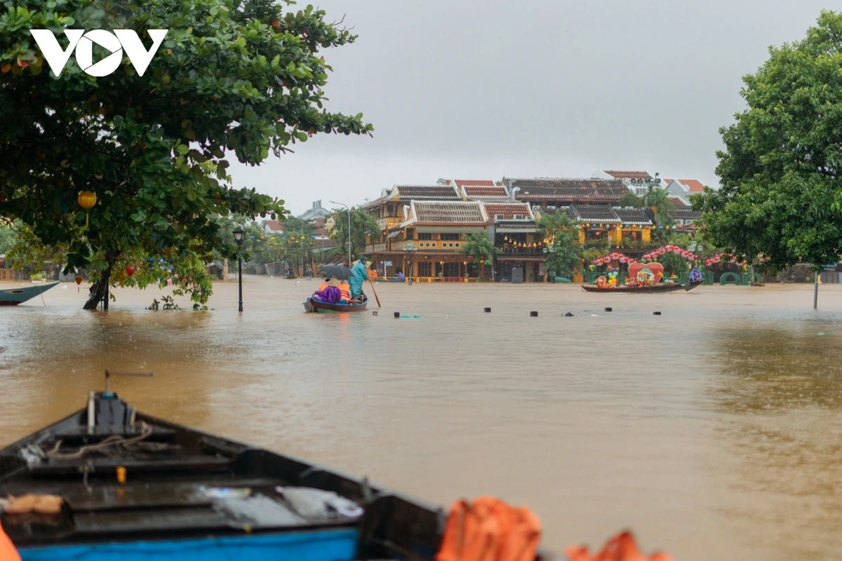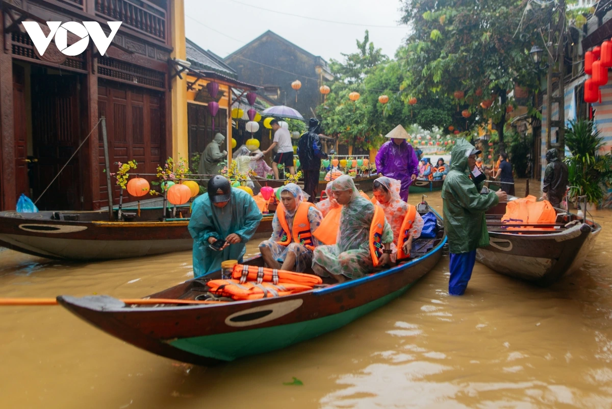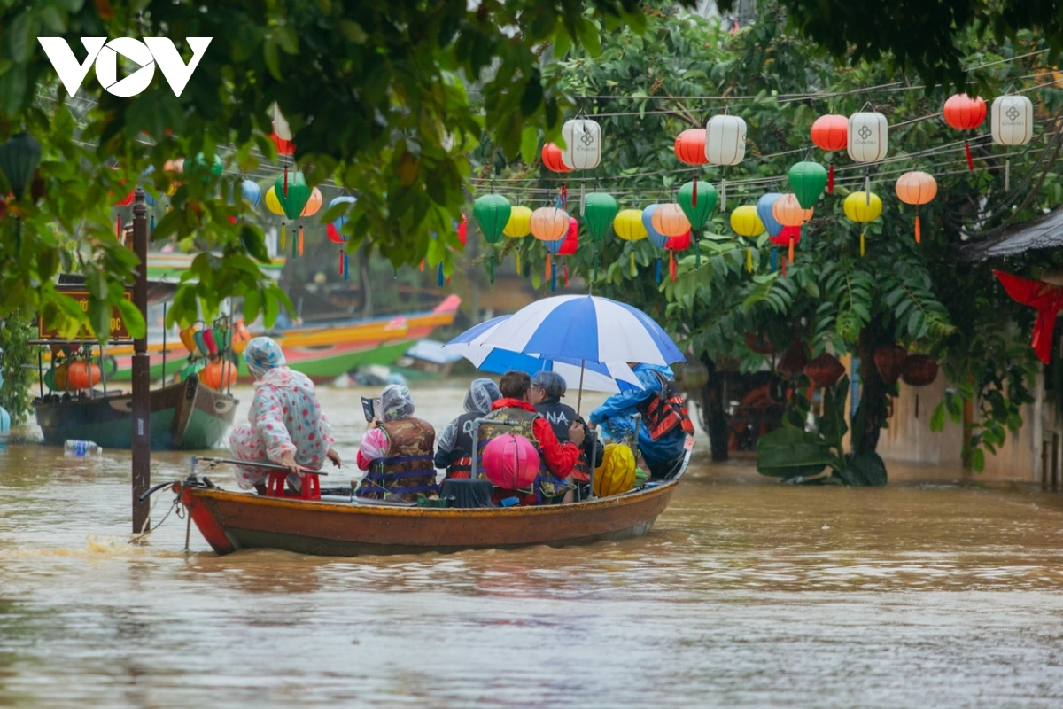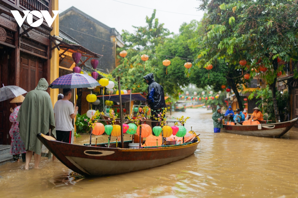 VOV.VN - Mưa lớn kèm thủy điện trên hệ thống sông Vu Gia - Thu Bồn xả lũ khiến nhiều tuyến đường ở khu phố cổ Hội An (TP Đà Nẵng) ngập sâu, du khách thích thú lội nước, ghe thuyền tấp nập đi lại. Nhiều tuyến phố trung tâm như Bạch Đằng, Nguyễn Thái Học, Lê Lợi ngập sâu từ 1-1,5m.