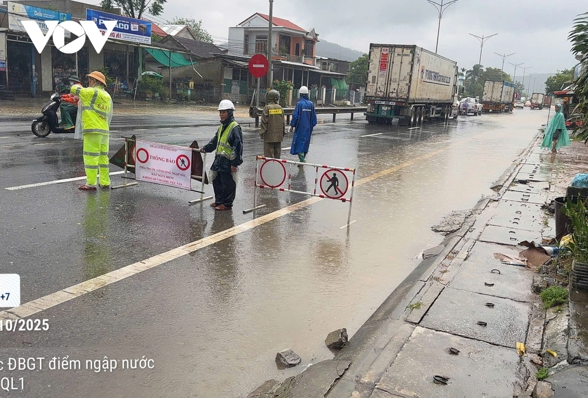 Mưa lớn trong mấy ngày qua gây thiệt hại nặng hệ thống giao thông các tỉnh, thành phố khu vực miền Trung từ Quảng Trị đến Quảng Ngãi. Đường Hồ Chí Minh nhánh Tây xuất hiện hàng chục điểm sạt lở; Quốc lộ 1A bị ngập sâu nhiều đoạn, Đường Hồ Chí Minh thuộc Dự án nâng cấp mở rộng cao tốc La Sơn - Hòa Liên bị sạt lở ta luy dương, nhiều đoạn nước lũ tràn qua, gây ách tắc giao thông. Đơn vị quản lý giao thông đang tập trung khắc phục sạt lở, phân luông phương tiện lưu thông tránh các điểm sạt lở, ngập sâu.