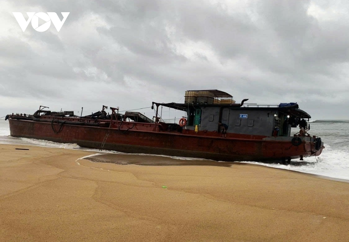 Tàu chở hàng chở 2.000 lít dầu mắc cạn ở Đức Phổ, Quảng Ngãi