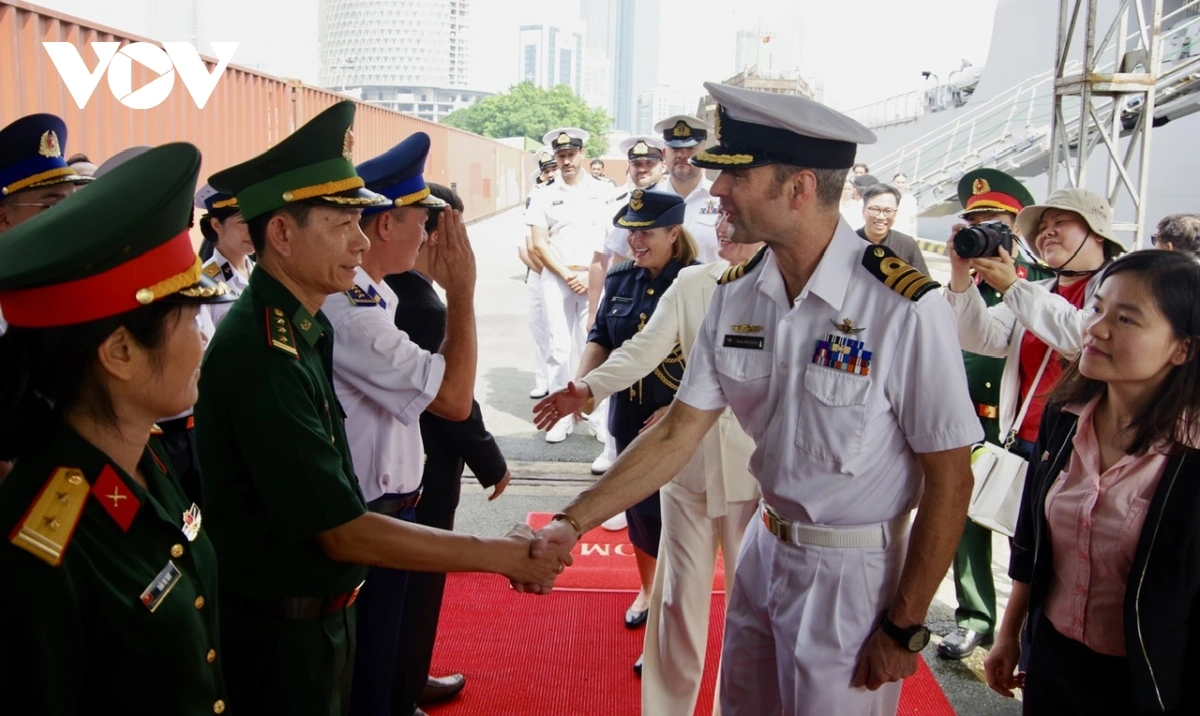 VOV.VN - Ngày 23/10, tàu HMNZS AOTEAROA của Hải quân New Zealand đã cập cảng Nhà Rồng, TP.HCM, bắt đầu chuyến thăm xã giao. Đại diện UBND TP.HCM, lực lượng vũ trang và các cơ quan chức năng đã chủ trì lễ đón tàu.