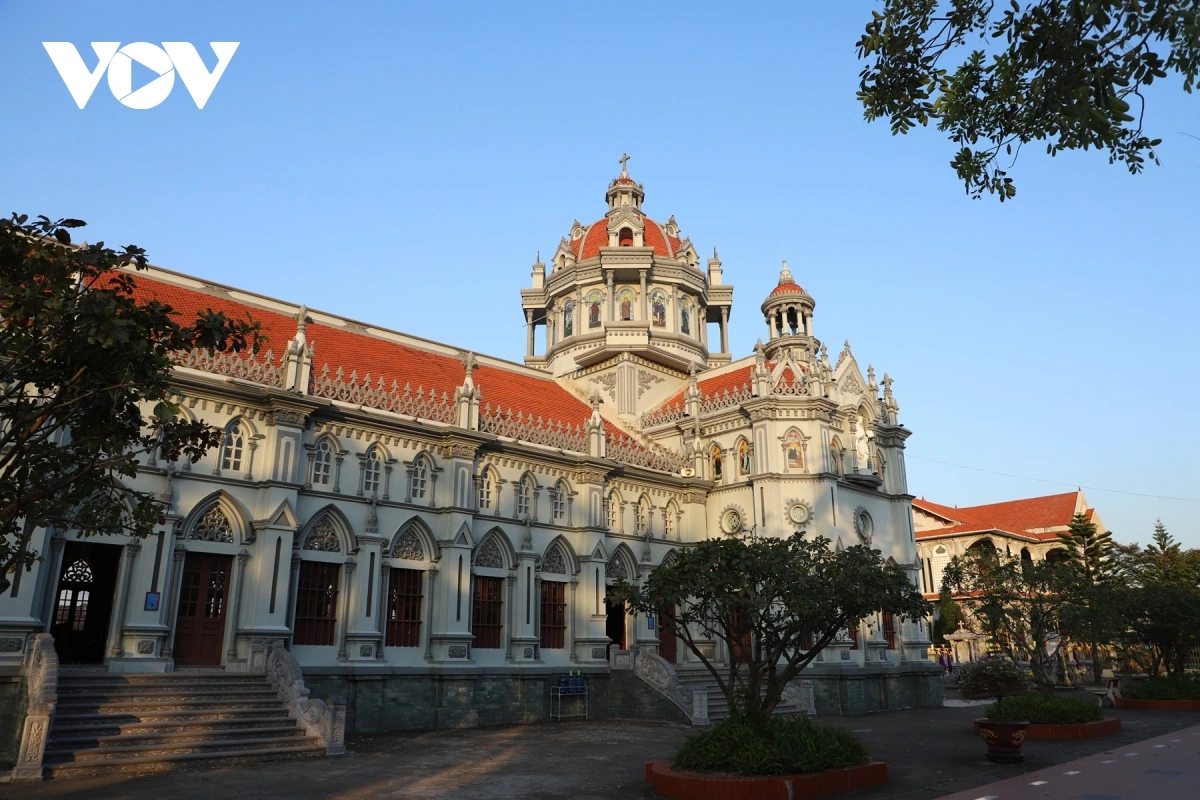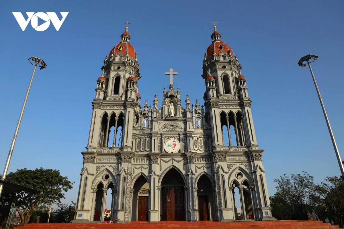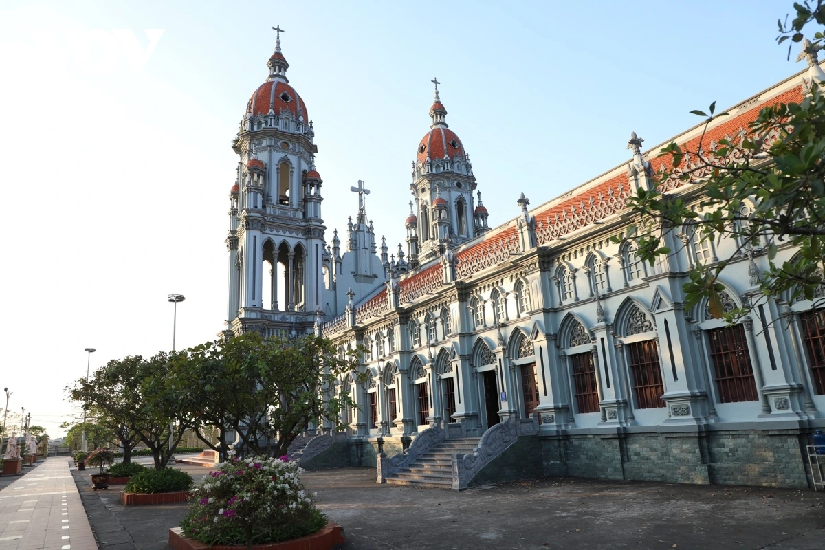 Nhà thờ tọa lạc trên khuôn viên rộng hơn 30.000 m², nổi bật với kiến trúc bề thế. Công trình chính dài 79 m, rộng 15,9 m, hai tháp chuông vươn cao giữa không gian sinh hoạt tôn giáo của cộng đồng.