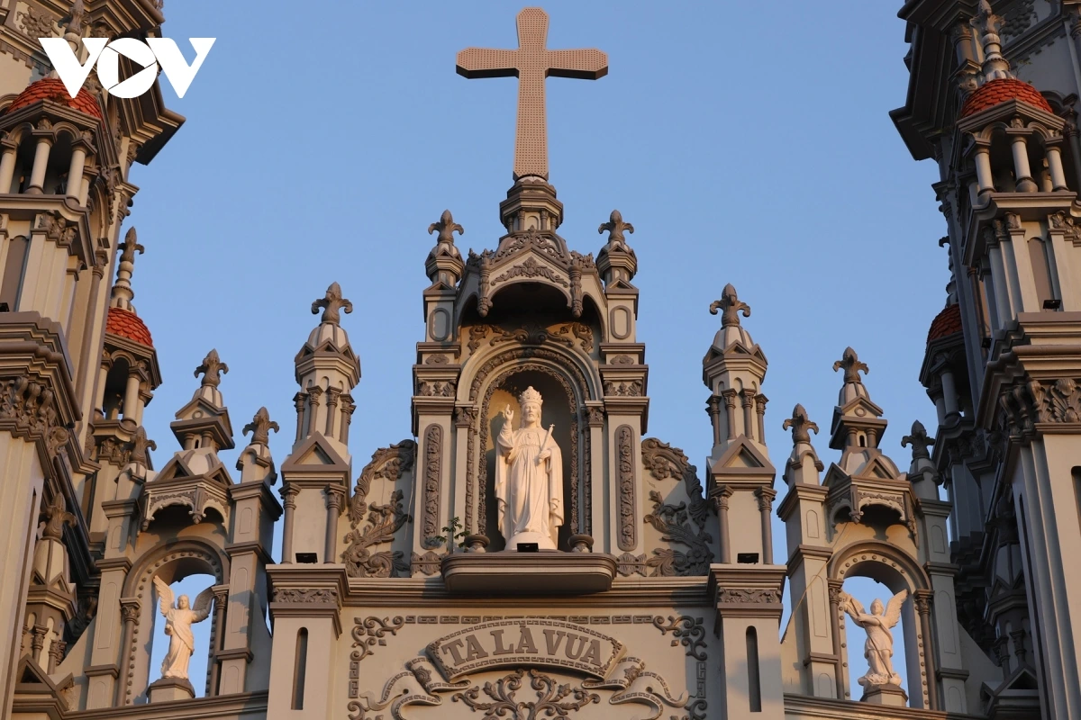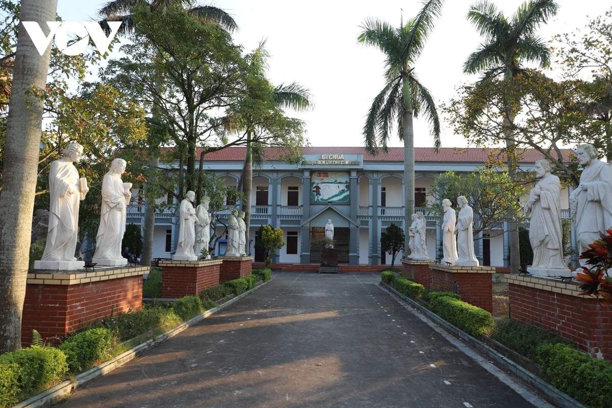Các bức tượng được đặt trang nghiêm trong khuôn viên nhà thờ, góp phần làm nổi bật vẻ linh thiêng của không gian.