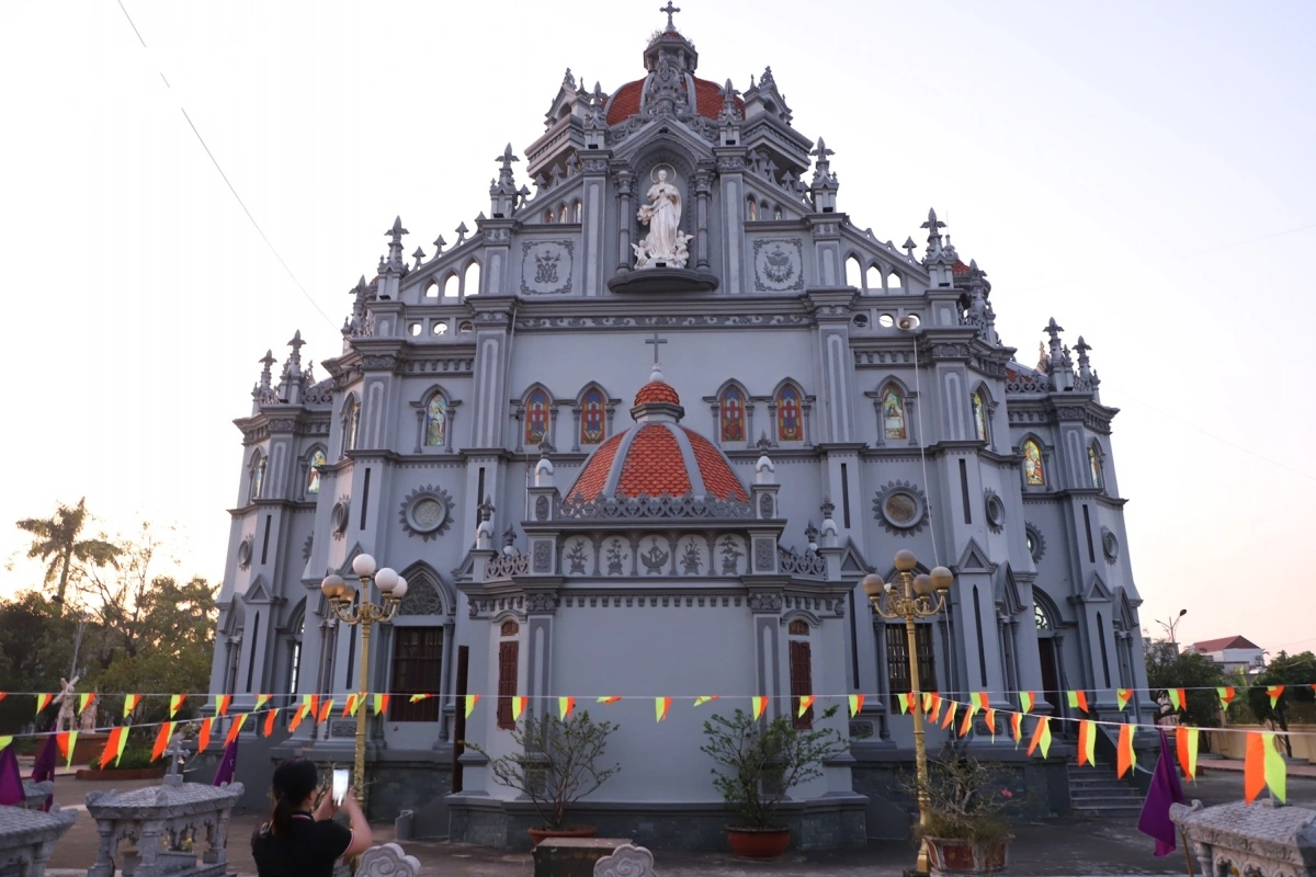 Biểu tượng Thánh giá trên đỉnh tháp chuông là điểm nhấn nổi bật của công trình hơn 400 năm tuổi.