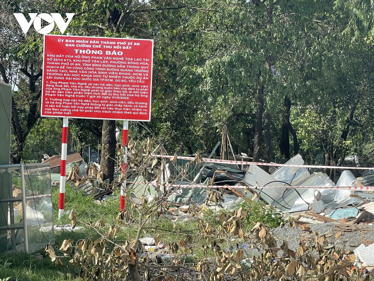 Theo UBND TP.Dĩ An, tỉnh Bình Dương, “chợ đêm” tại khu đất của hộ ông Phạm Văn Nghệ (tại số 22/10 KT3, khu phố Tân Lập, phường Đông Hòa) nằm trong quy hoạch để thi công công trình đường quảng trường sáng tạo, nhà văn hóa sinh viên Đại học Quốc gia TP.HCM và Trường ĐH Khoa học Tự nhiên (thuộc dự án xây dựng ĐH Quốc gia TP. HCM).