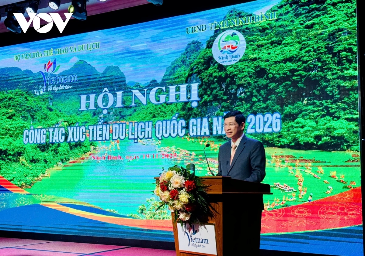 VOV.VN - Hội nghị về công tác xúc tiến du lịch quốc gia năm 2026 được tổ chức chiều ngày 18/11/2025 tại tỉnh Ninh Bình, tập trung vào các giải pháp quảng bá, xúc tiến du lịch nhằm ứng phó linh hoạt và bền vững hơn trong bối cảnh mới.