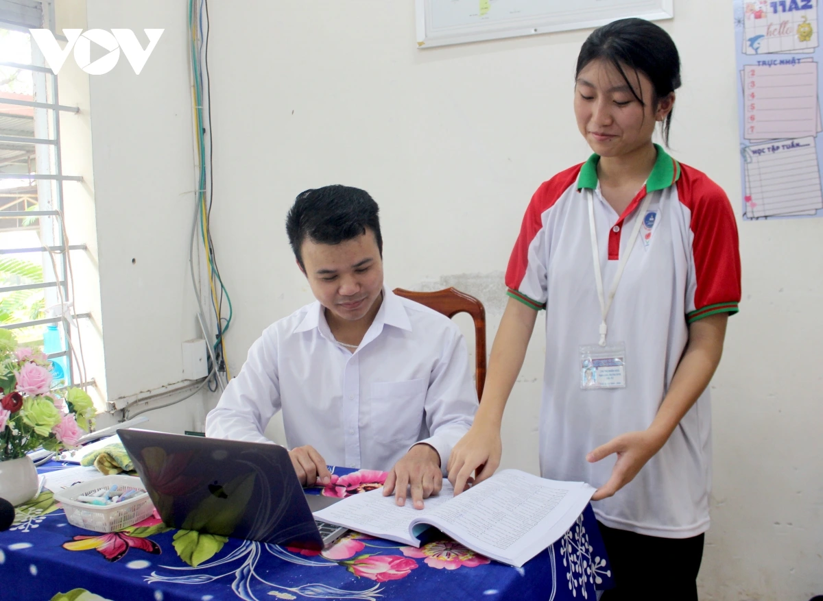 Thầy giáo trẻ luôn theo sát, kèm cặp và hỗ trợ từng học sinh.