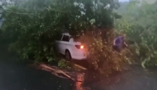 VOVVN - VOV.VN - Siêu bão Yagi khi đổ bộ vào đảo Hải Nam, Trung Quốc hôm 6/9 đã gây mất điện diện rộng tại đây, đồng thời gió bão cũng khiến nhiều cây cối bật gốc...