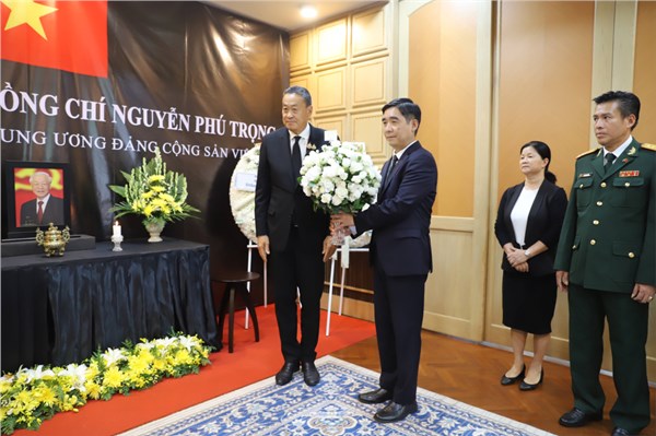 VOV1 - Đại sứ quán Việt Nam tại Thái Lan hôm nay (25/7) đã trang trọng tổ chức lễ viếng và mở sổ tang đồng chí Nguyễn Phú Trọng, Tổng Bí thư Ban Chấp hành Trung ương...