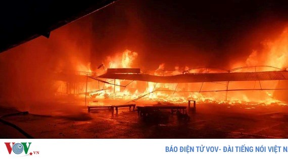 VOVVN - VOV.VN - Ước tính ban đầu có khoảng 17 quầy hàng bị thiêu rụi, một số gian hàng khác bị ảnh hưởng nhẹ.
