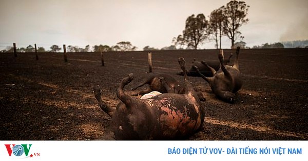 VOVVN - VOV.VN - Người nông dân tại Australia buộc phải đào những hố chôn khổng lồ để chôn vùi hàng trăm con gia súc bị chết trong các đám cháy.