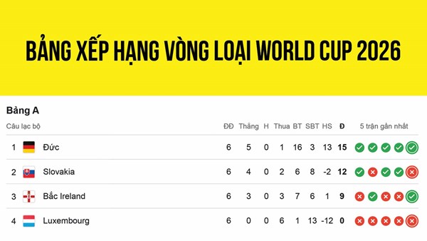VOVVN - VOV.VN - Bảng xếp hạng vòng loại World Cup 2026 khu vực châu Âu mới nhất sau các loạt trận đấu diễn ra rạng sáng 18/11.