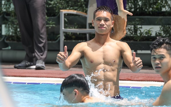 VOVVN - VOV.VN - Các cầu thủ U23 Việt Nam được nghỉ trọn vẹn ngày 11/4 để hồi phục sau trận giao hữu với U23 Jordan và có thời gian thư giãn tại bể bơi.