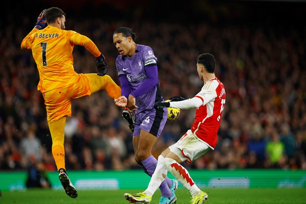 VOVVN - VOV.VN - Arsenal giành chiến thắng 3-1 trước Liverpool trong ngày thủ môn Alisson mắc lỗi dẫn tới 2 bàn thua còn trung vệ Konate nhận thẻ đỏ.