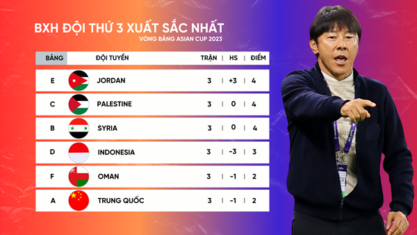 VOVVN - VOV.VN - Bảng xếp hạng những đội đứng thứ 3 có thành tích tốt nhất Asian Cup 2023, Oman không thể thắng ở lượt trận cuối nên dâng vé đi tiếp vào vòng 1/8 cho...