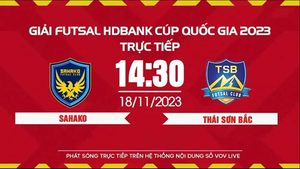 VOVVN - VOV.VN - Xem trực tiếp trận đấu Sahako vs Thái Sơn Bắc tại Giải Futsal HDBank Cúp Quốc gia 2023 diễn ra lúc 14h30 ngày 18/11.