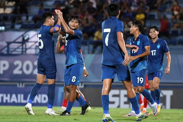 VOVVN - VOV.VN - U23 Thái Lan giành chiến thắng 2-0 trước U23 Campuchia sau màn so tài dưới cơn mưa lớn và đứng đầu đầu bảng A với 9 điểm tuyệt đối.