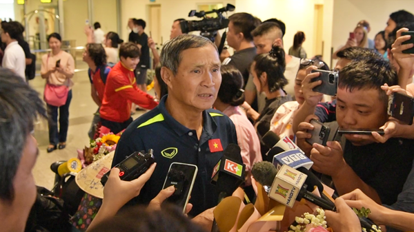 VOVVN - VOV.VN - HLV Mai Đức Chung xúc động khi ĐT nữ Việt Nam được các cổ động viên và giới truyền thông có mặt rất đông ở sân bay để chào đón sau chiến dịch...