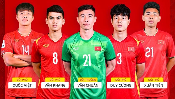 VOVVN - VOV.VN - Thủ môn Quan Văn Chuẩn là đội trưởng U23 Việt Nam tại giải U23 Đông Nam Á 2023 và 4 đội phó gồm Lương Duy Cương, Khuất Văn Khang, Nguyễn Quốc Việt, Đinh...