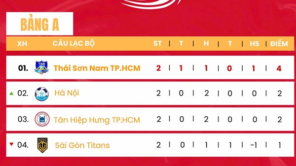 VOVVN - VOV.VN - Bảng xếp hạng Futsal HDBank Cúp Quốc gia 2025 mới nhất tính sau lượt trận thứ 2, Thái Sơn Nam dẫn đầu bảng A với 4 điểm.
