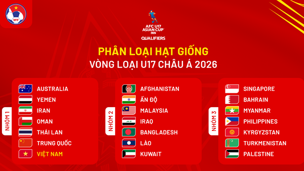 VOVVN - VOV.VN - Liên đoàn Bóng đá châu Á (AFC) vừa công bố danh sách các quốc gia đăng cai tổ chức vòng loại Giải vô địch U17 nam châu Á 2026.