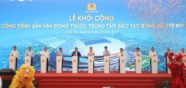VOVVN - VOV.VN -The Ministry of Public Security on October 19 broke ground on the 60,000-seat PVF Stadium, attended by Party General Secretary To Lam, Politburo and Secretariat members, and representatives of central agencies and northern Hung...