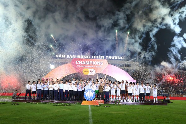 VOVVN - VOV.VN - Bùng nổ cảm xúc khoảnh khắc CLB Nam Định nâng cúp vô địch V-League 2024/2025 sau trận đấu cuối cùng của mùa giải.