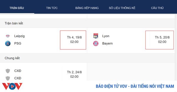 VOVVN - VOV.VN - Lịch thi đấu bán kết Champions League 2019/2020 là câu chuyện riêng của các đại diện đến từ Pháp và Đức.