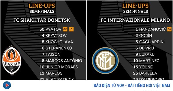 VOVVN - VOV.VN - Trực tiếp Inter Milan vs Shakhtar Donetsk bán kết Europa League 2019/2020 diễn ra vào lúc 2h ngày 18/8.
