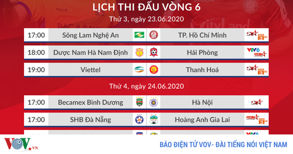 VOVVN - VOV.VN - Lịch thi đấu vòng 6 V-League 2020, SLNA vs TPHCM quyết đấu, Viettel đọ sức Thanh Hóa, Hà Nội FC làm khách của Bình Dương.
