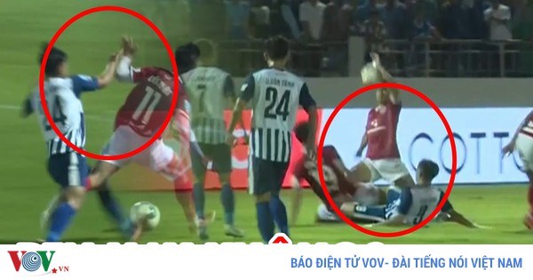 VOVVN - VOV.VN - Các cầu thủ Bà Rịa Vũng Tàu phản ứng dữ dội khi cho rằng hậu vệ Phố Hiến đã để bóng chạm tay trong vòng cấm nhưng trọng tài không thổi phạt đền.