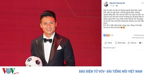 VOVVN - VOV.VN - Trong 3 năm qua, tiền vệ Nguyễn Quang Hải đã giành trọn cả 3 danh hiệu Quả bóng Vàng, Quả bóng Bạc và Quả bóng Đồng.