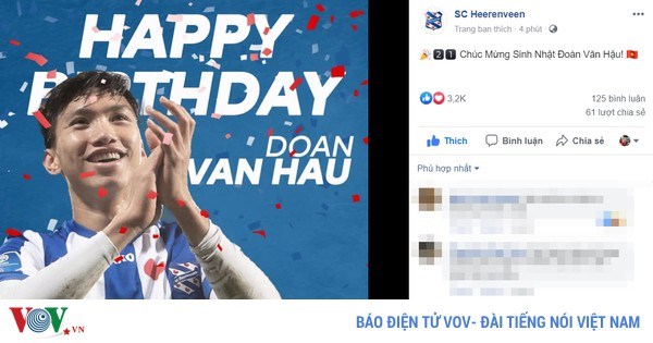VOVVN - VOV.VN - Video Văn Hậu ăn mừng sinh nhật lần thứ 21 với đồng đội ở SC Heerenveen trên đất Hà Lan.