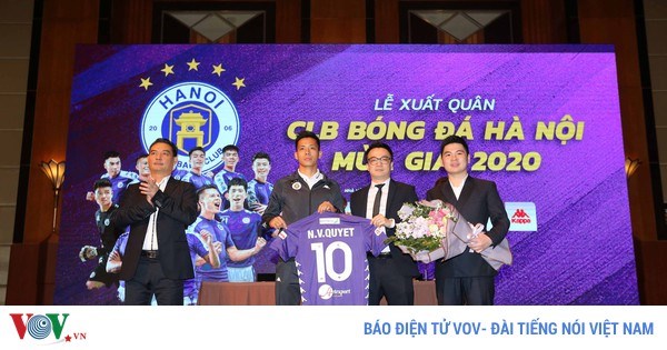 VOVVN - VOV.VN - Tại Lễ xuất quân của Hà Nội FC mùa giải 2020, đội trưởng Nguyễn Văn Quyết đặt bút ký gia hạn hợp đồng 3 năm, nguyện gắn bó "trọn đời" cầu thủ tại...