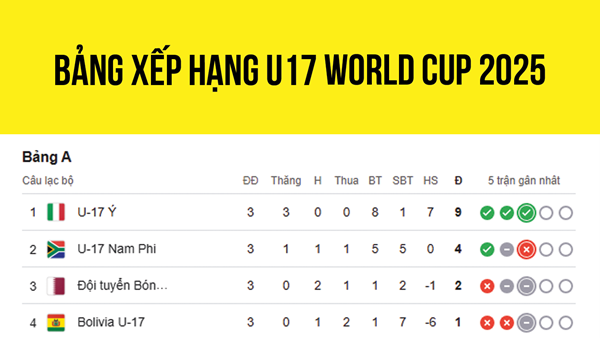 VOVVN - VOV.VN - Bảng xếp hạng U17 World Cup 2025 mới nhất: Sau chiến thắng kịch tính với tỉ số 2-1 trước Honduras, Indonesia vẫn còn cơ hội giành vé đi tiếp thông qua tấm vé...