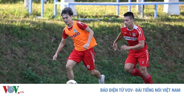 VOVVN - VOV.VN - Tiền đạo Nguyễn Văn Toàn và các đồng đội tràn đầy khí thế trong buổi tập khai xuân của HAGL diễn ra chiều 30/1 (tức mùng 6 Tết).