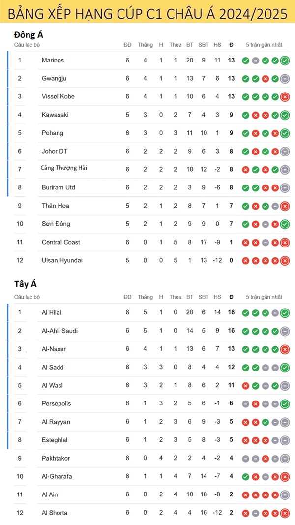 VOVVN - VOV.VN - Bảng xếp hạng Cúp C1 châu Á mới nhất: Al Nassr của Ronaldo đã giành vé đi tiếp, 2 CLB Đông Nam Á đang ở tình thế không dễ dàng để giành quyền...