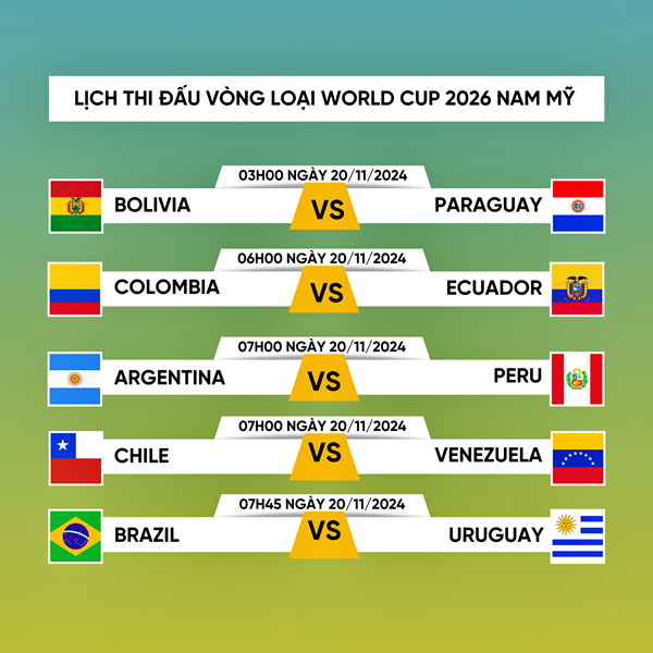 VOVVN - VOV.VN - Lịch thi đấu và trực tiếp vòng loại World Cup 2026 khu vực Nam Mỹ, Brazil được dự đoán gặp nhiều khó khăn khi đối đầu với Uruguay ở lượt trận 12.