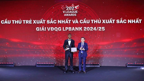 VOVVN - VOV.VN - V-League Awards 2025 kết thúc với danh hiệu được chờ đợi - cầu thủ xuất sắc nhất mùa giải thuộc về ngoại binh Alan Sebastiao Alexandre (CLB CAHN).