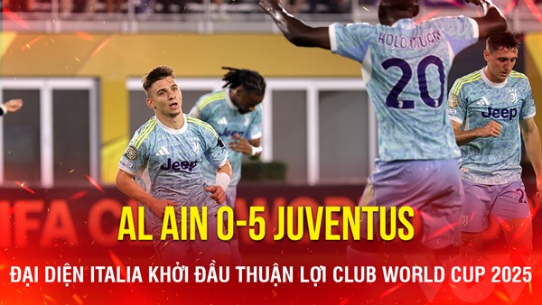 VOVVN - VOV.VN - Kết quả bóng đá hôm nay 19/6: Juventus thắng đậm ngày ra quân Club World Cup 2025 khi vượt qua Al Ain (UAE) với tỷ số 5-0.