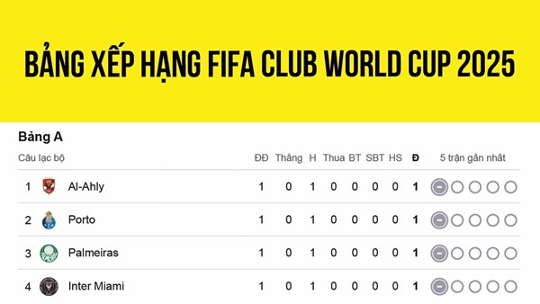 VOVVN - VOV.VN - Cập nhật bảng xếp hạng FIFA Club World Cup 2025™ mới nhất tính đến sáng 17/6, Chelsea thắng 2-0 Los Angeles trong trận ra quân tại bảng D.