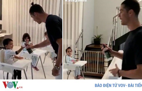 VOVVN - VOV.VN - Trong những ngày phải ở nhà riêng để cách ly vì Covid-19, Cristiano Ronaldo đã hướng dẫn các con của mình cách rửa tay để phòng dịch bệnh.
