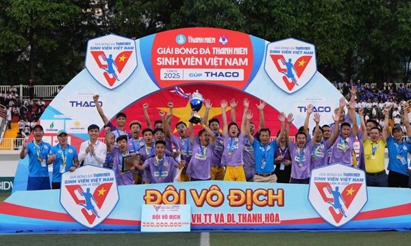 VOVVN - VOV.VN - Sau hai tuần thi đấu tranh tài, chiều 16/3, Giải bóng đá Thanh Niên sinh viên Việt Nam lần III - 2025 Cúp THACO đã khép lại với trận chung kết kịch tính giữa...