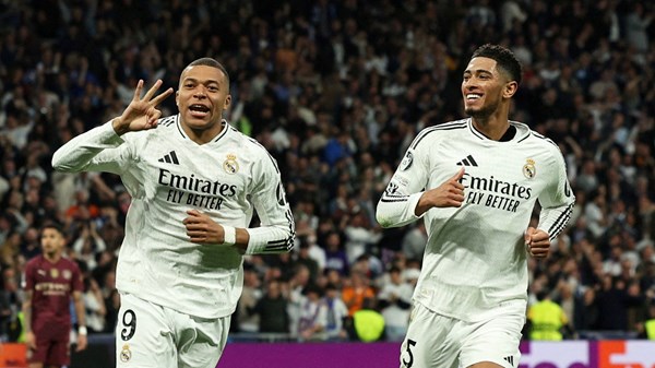 VOVVN - VOV.VN - Real Madrid phải trả giá đắt sau chiến thắng trước Man City khi Jude Bellingham bị treo giò ở trận lượt đi vòng 1/8 Cúp C1 châu Âu 2024/2025.