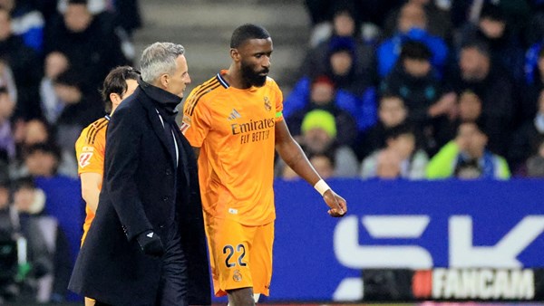VOVVN - VOV.VN - Real Madrid nhận tin dữ sau trận thua 0-1 trước Espanyol tại vòng 22 la Liga 2024/2025 khi trung vệ Rudiger dính chấn thương.